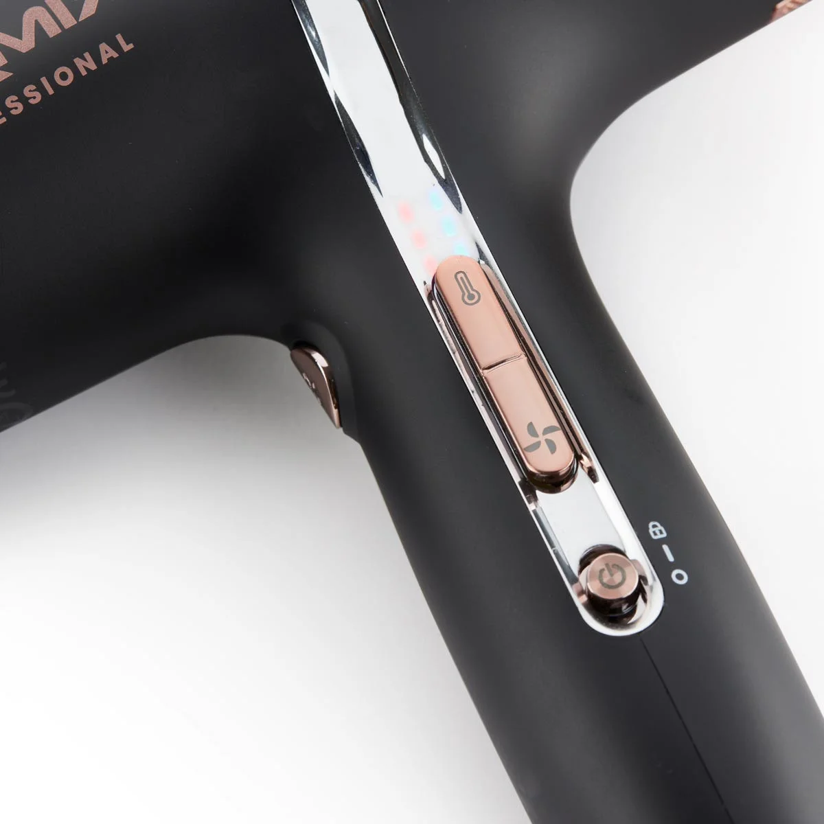 El secador Termix Professional Illusion transforma tu experiencia de secado, combinando tecnología de vanguardia con un diseño ultraligero y extremadamente silencioso. Equipado con un revolucionario motor BLDC de 2000-2400W, reduce el tiempo de secado en un 40% sin necesidad de calor extremo, preservando la hidratación natural del cabello. Su avanzada tecnología iónica y la función de autolimpieza aseguran un cabello más suave, brillante y sin encrespamiento. Con solo 400 gramos de peso, ofrece un equilibrio perfecto entre potencia, confort y silencio, redefiniendo el cuidado del cabello. #StyleYourIllusion